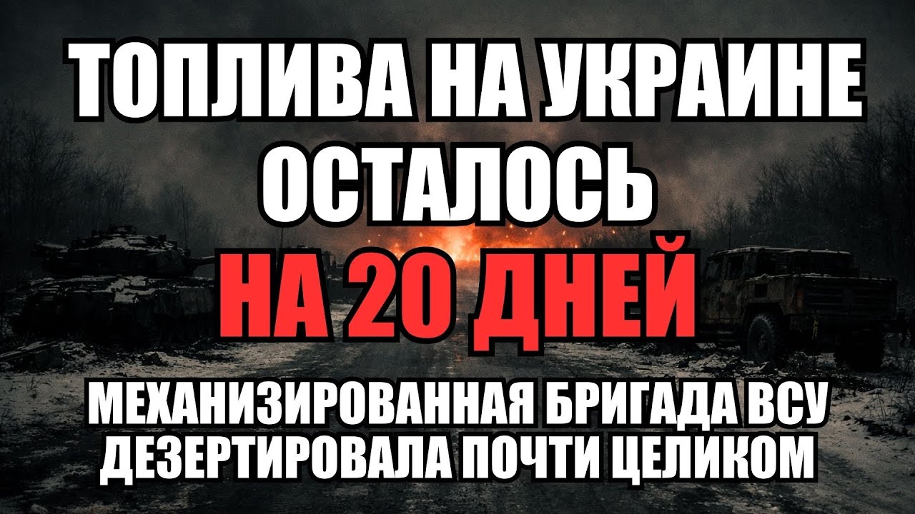 Министр энергетики Украины Денис Шмыгаль заявил, что запасов топлива в стране хватит только на двадцать дней. Энергосистема страны рушится под постоянными ударами российских беспилотников и ракет. Ситуация на линии фронта также напряженная. Благодаря взаимодействию тяжелых бомбардировщиков и беспилотных летательных аппаратов Герань поле боя надежно контролируется российскими вооруженными силами. Недавно сто пятьдесят пятая механизированная бригада ВСУ, на которой возлагались большие надежды, почти целиком дезертировала.